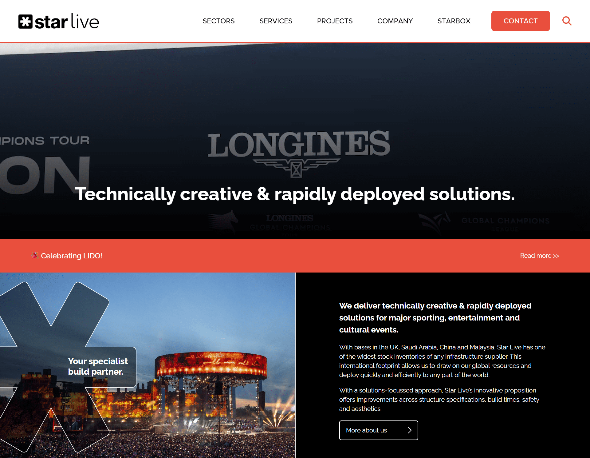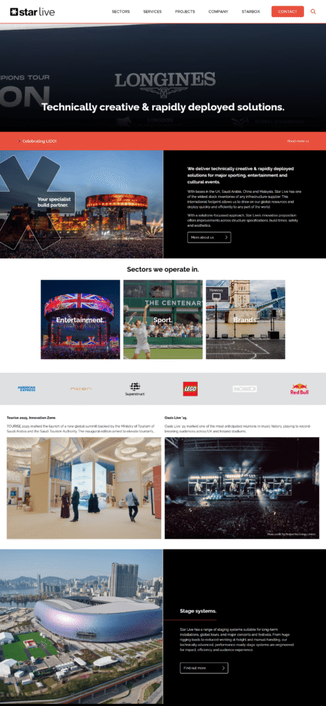 Alongside colleagues at Flaunt Digital, I built the new homepage for staging experts Star Live. A complete refresh of their prior site, this website was built with a focus on imagery to show off Star Live’s work and prestige.
